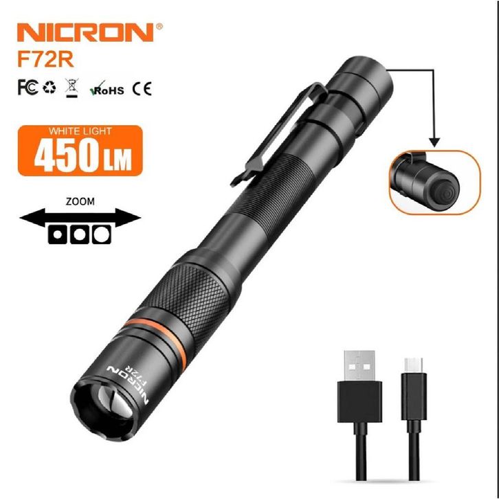 Nicron Senter Penlight F72R Easy Focus - Tingkat Cahaya 450 lumen, Jarak Cahaya 125 meter - Water resistant IPX4