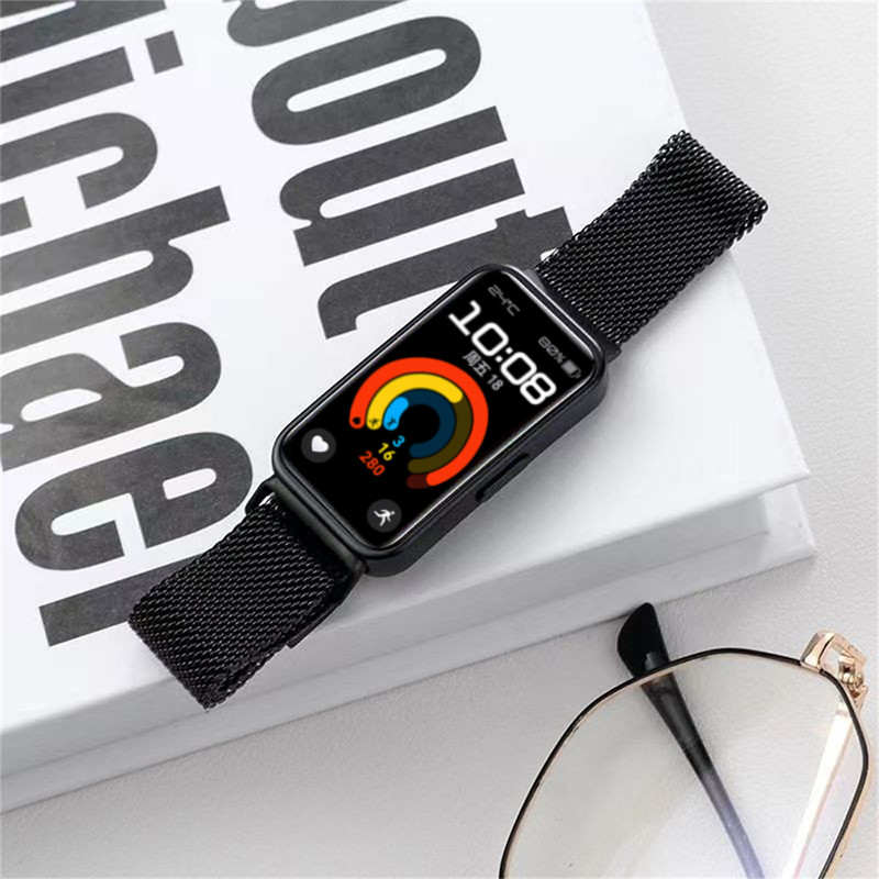 Magnetic Milanese Loop Strap for Huawei Band 10/Huawei Band 9/Huawei Band 8 Wrist Stainless Steel Metal Bracelet Band Bracelet Belt Accessories Tail Jam Tangan Smartwatch for Huawei Band 10 9 8 NFC