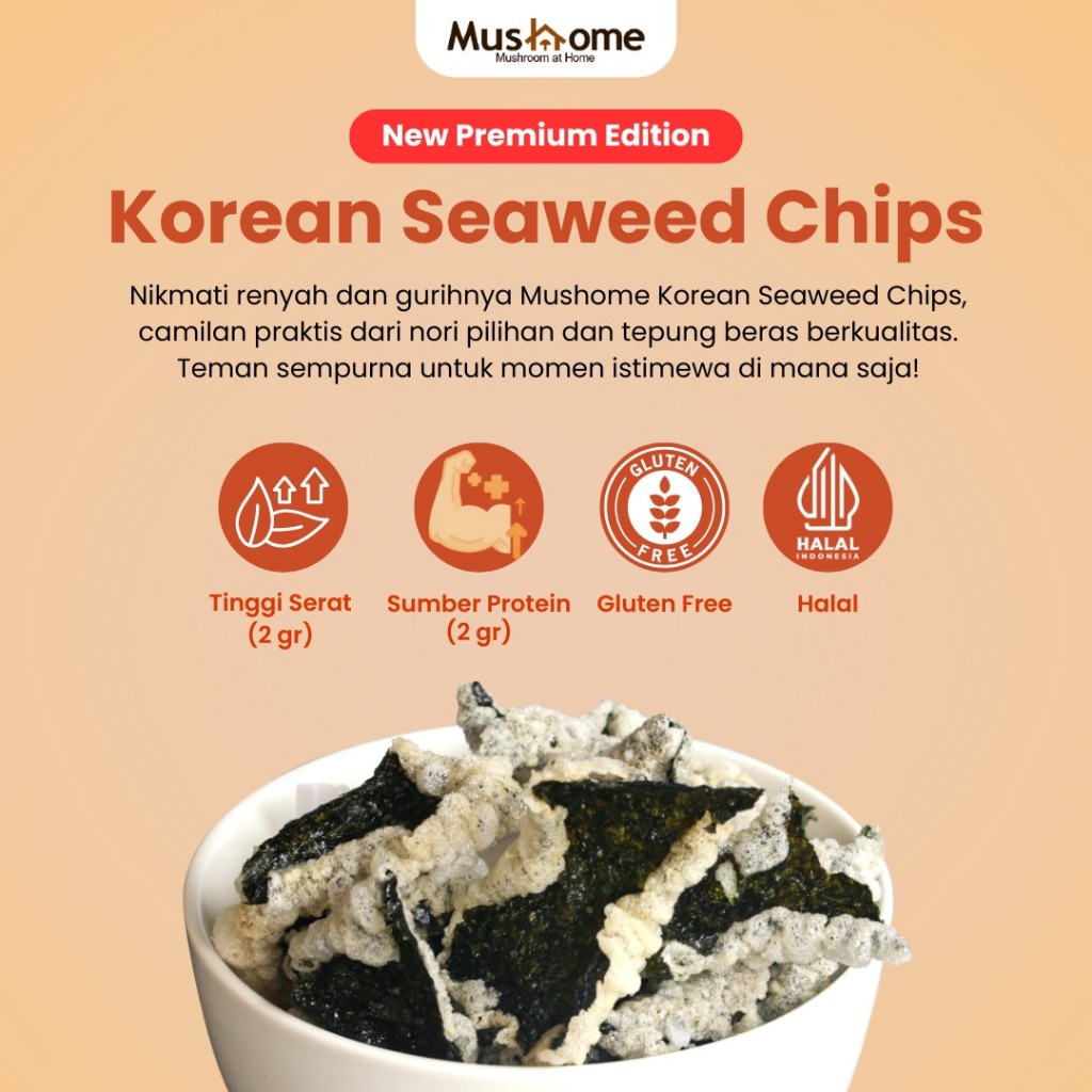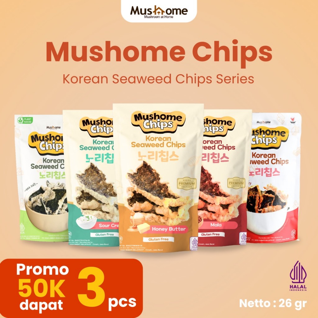 Keripik Korean Seaweed - Mushome Chips - Kaya Serat & Sumber Protein - Gluten Free - Rasa Sea Salt - Sweet Spicy - Mala - Honey Butter - Sour Cream