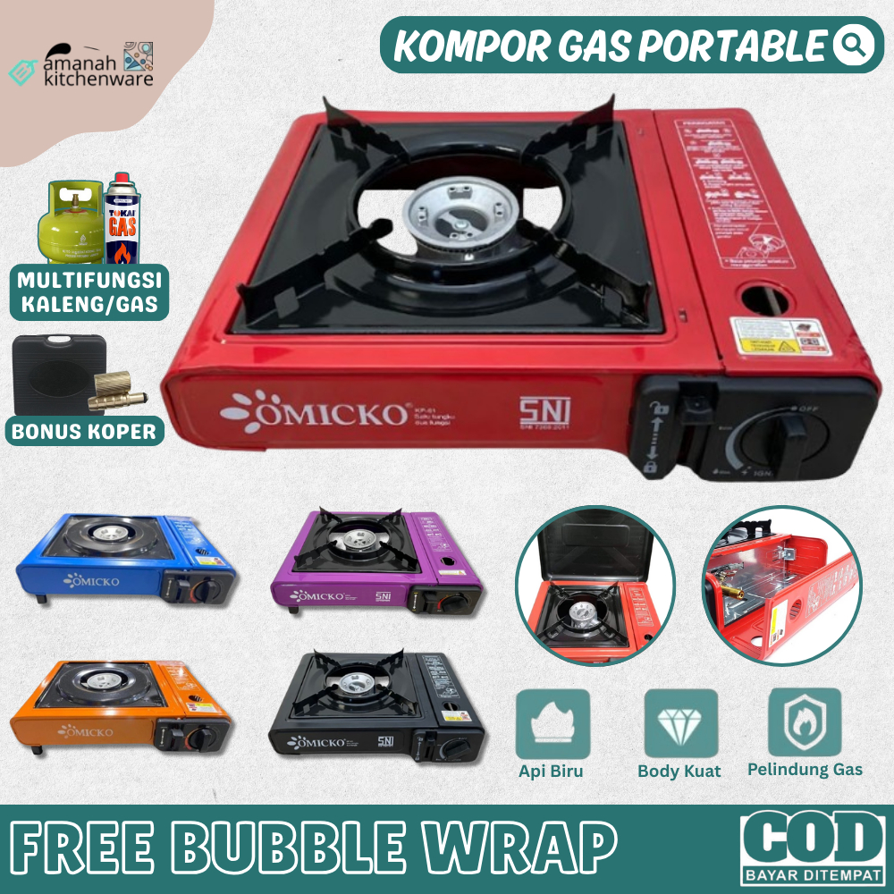 KOMPOR GAS PORTABLE 2 IN 1 AHK - (FREE BUBBLE KOPER) CAMPING OUTDOOR 1 TUNGKU / KOMPOR GRILL PORTABEL BBQ MURAH GARANSI