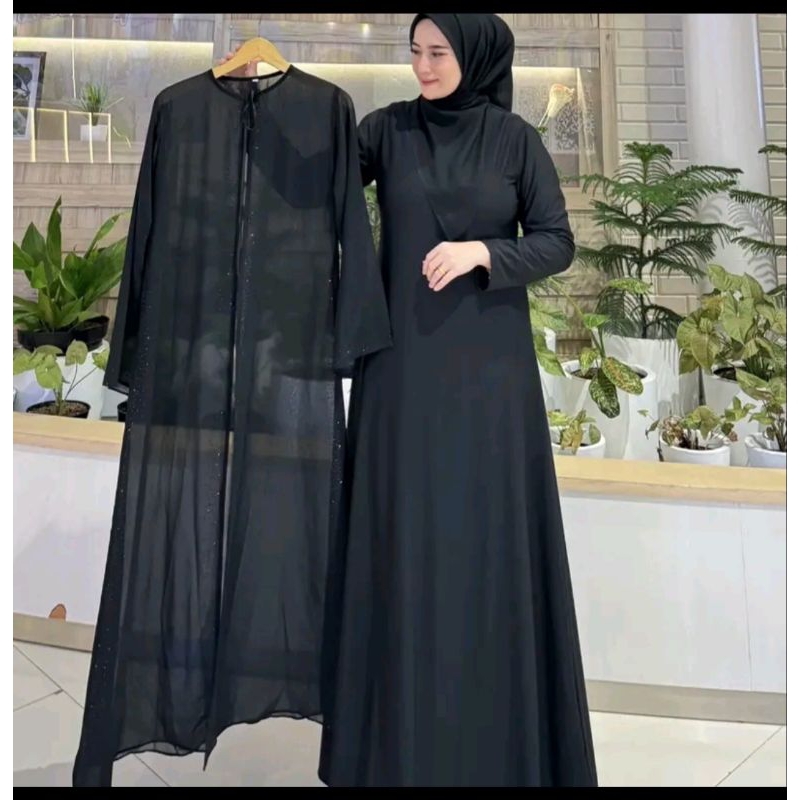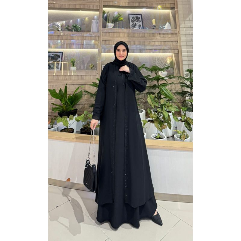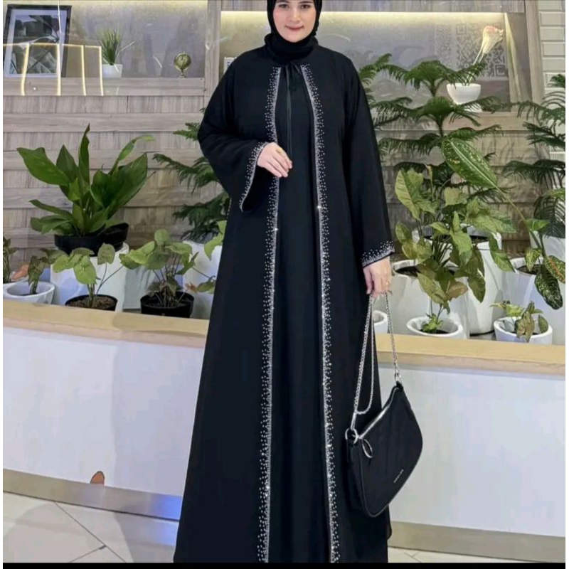 Gamis Abaya Turkey Yasmine Rompi Outer Pisah Payet Silver Dan Full Hitam