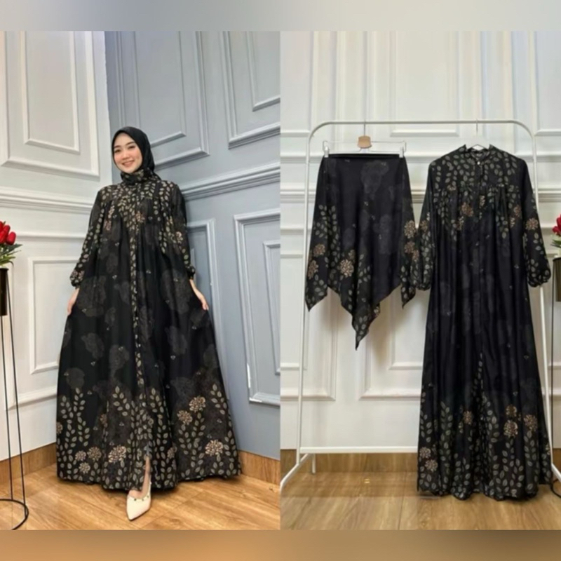 Gamis Set Hijab Rayon Diamond Premium LD 120 cm Free Hijab Bahan Adem dan Halus Busui