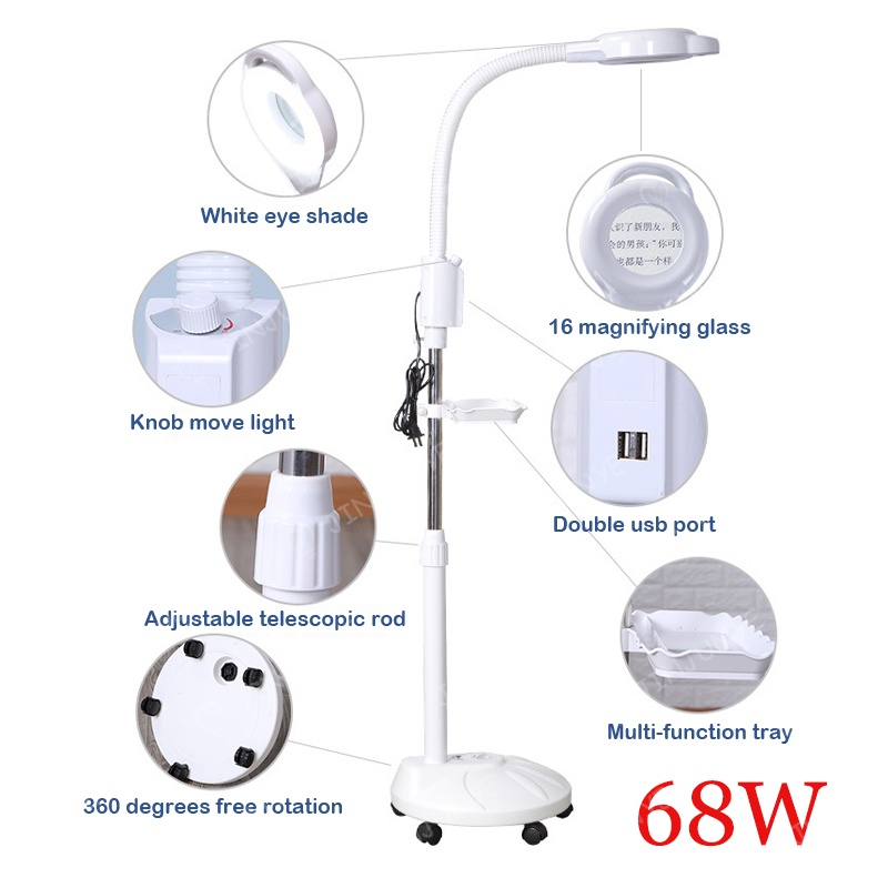 Lampu Facial LED Magnifiying Lamp Lampu Kaca Pembesar Digunakan Di Salon Dengan 68W Lampu Standing