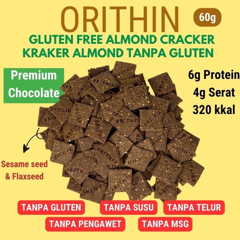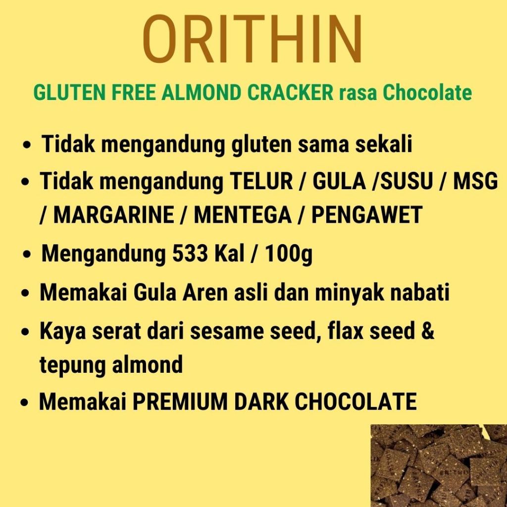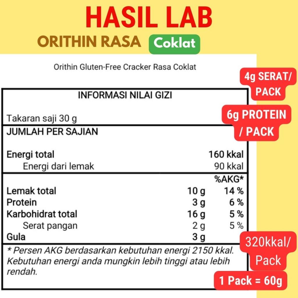 ORIThin Snack GlutenFree 60g rasa Coklat Cemilan Sehat Kaya Serat Tanpa Gluten / Susu / Telur / MSG