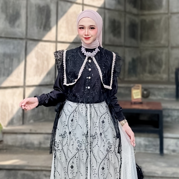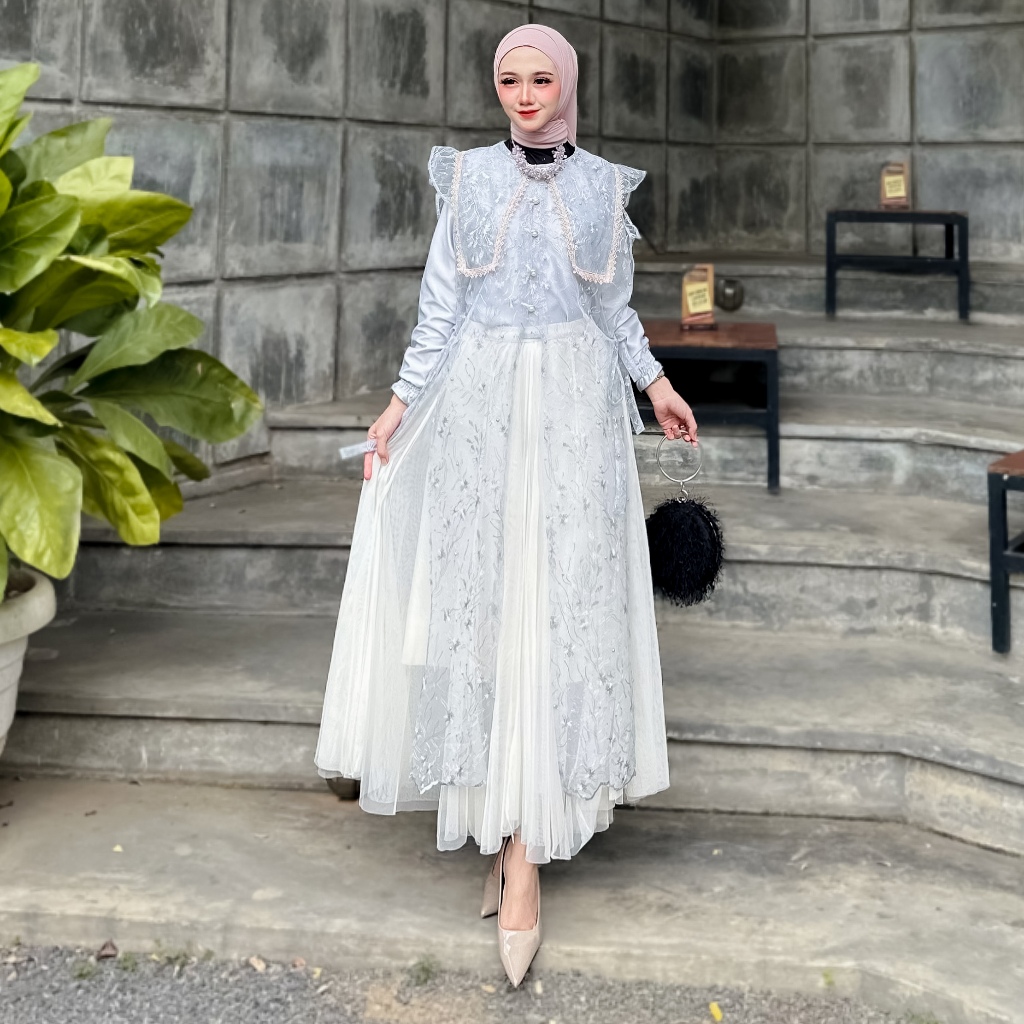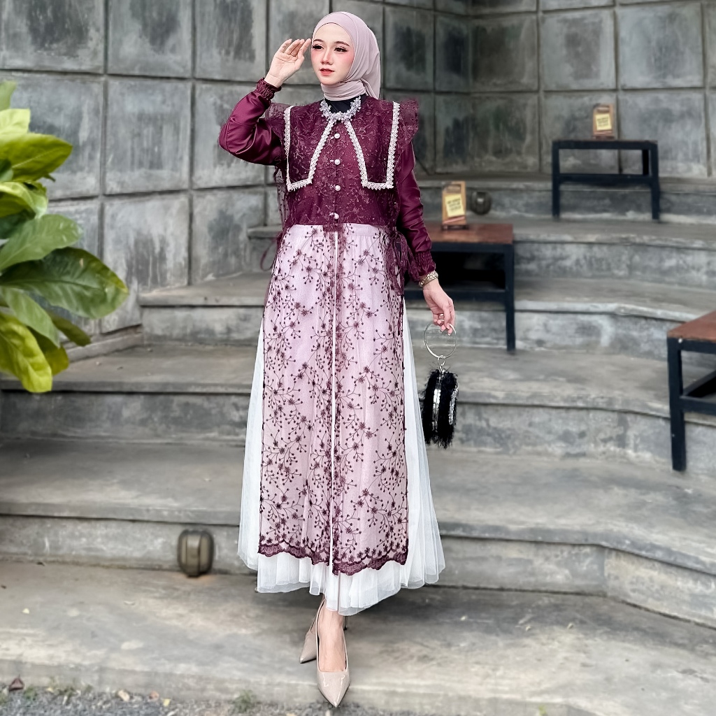 Selina Dress 3 in 1 Inner Outer Dan Rok Tutu Ratu Busana Gamis Muslim Wanita Wisuda Kondangan