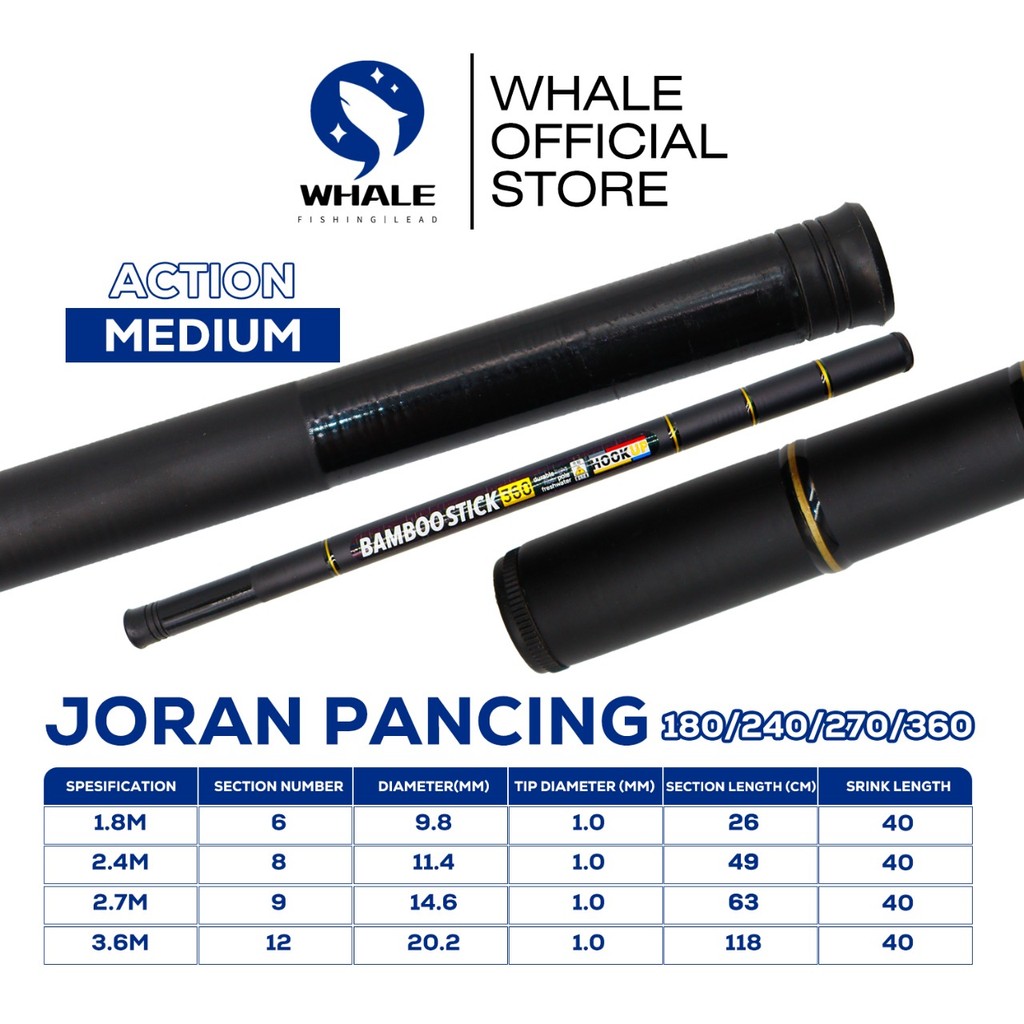 WHALE Joran Tegek Ukuran 1.8M - 3.6M Super Portabel BAMBOO STICK Ready