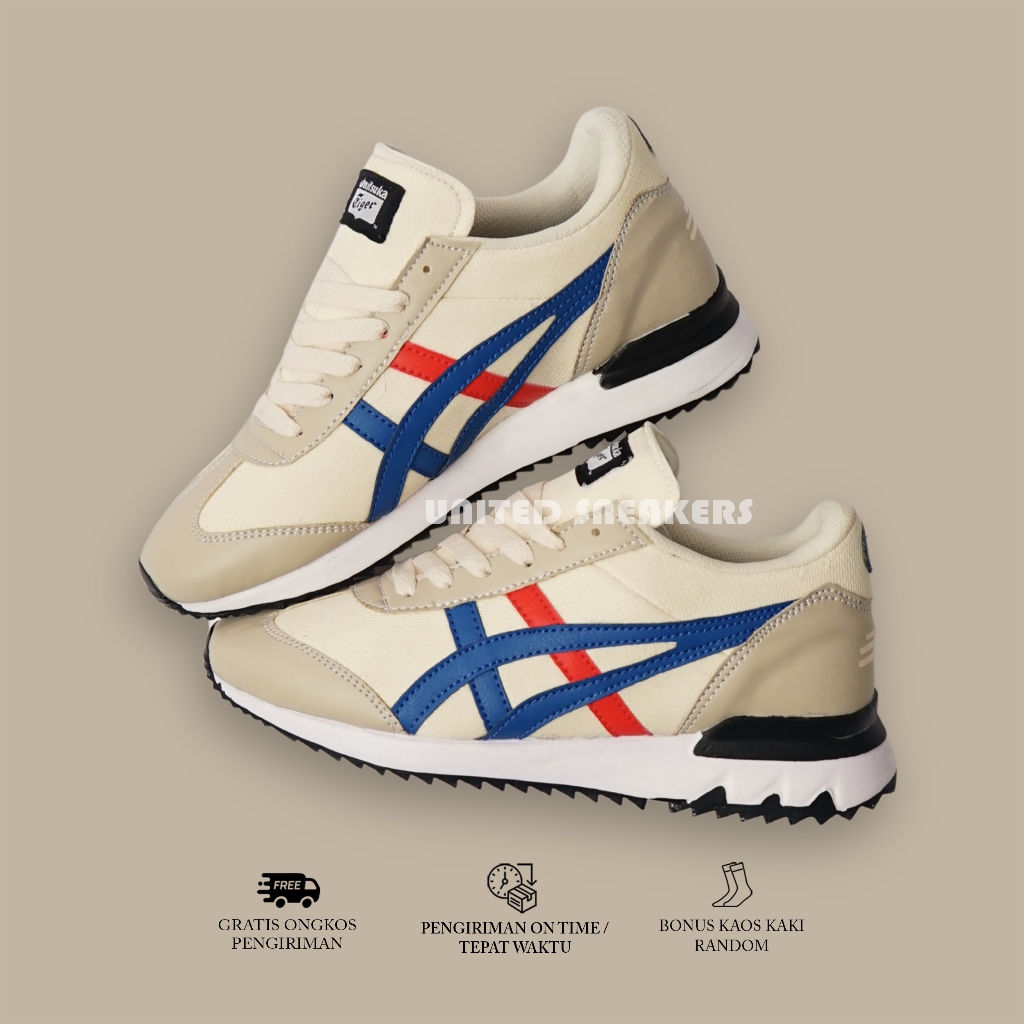 Sepatu Onitsuka Tiger California 78 Deluxe Cream Blue Red Bonus Kaos Kaki