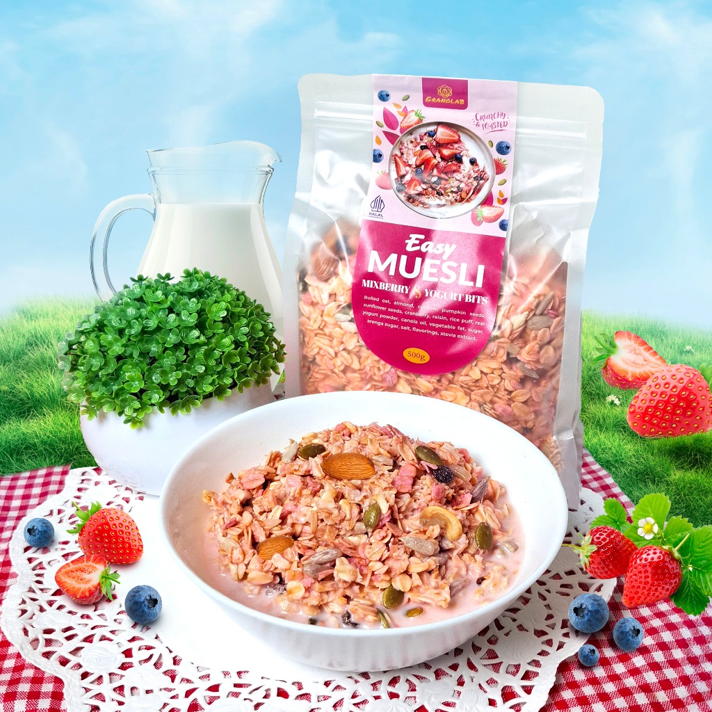 Easy Muesli Mix Berry Yogurt Bits dan Chocolate Delight | Muesli Panggang Siap Makan - Granolab Muesli