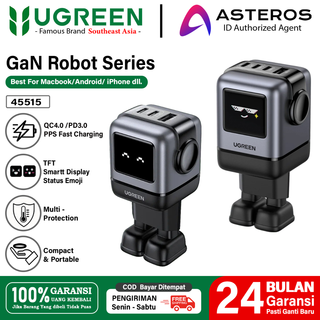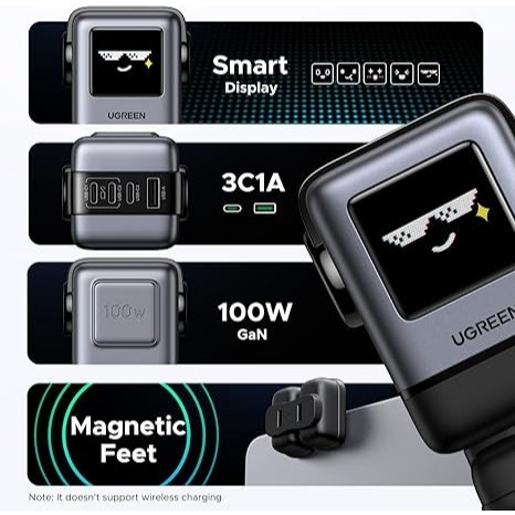 UGREEN Uno Wall Adaptor Charger 100W 65W GAN Robot Smart Display Fast Charging PPS PD 3.0 4.0