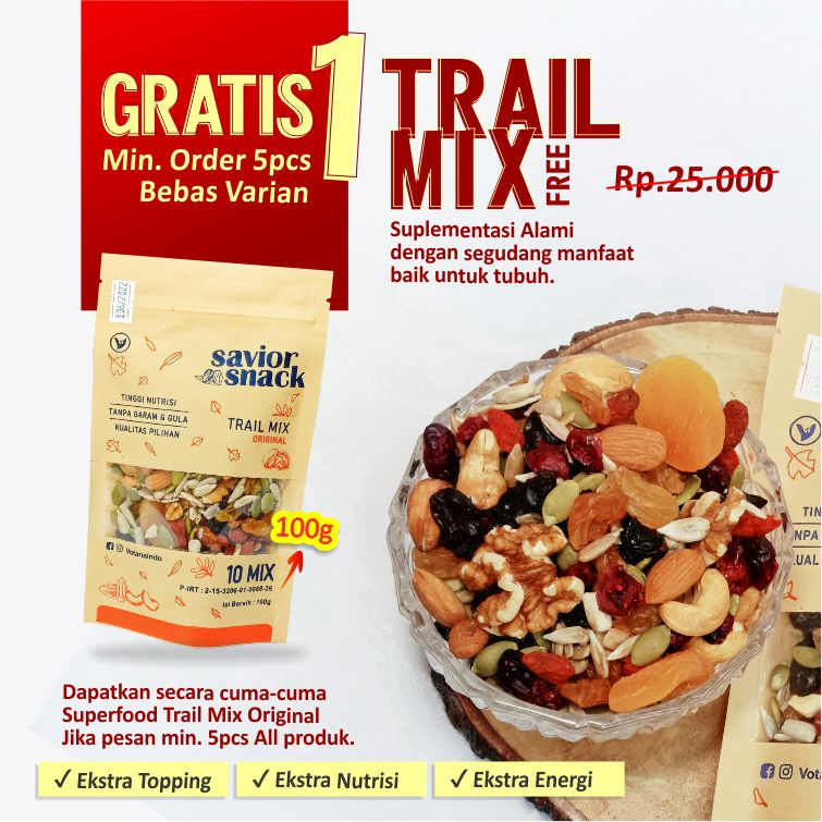Makanan Sehat Cemilan Trail Mix Nuts Seed Fruit Sarapan Granola Cokelat Vanilla Cinamon SAVIOR SNACK
