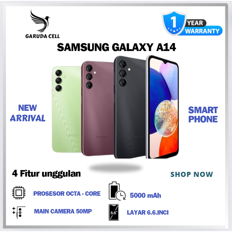 [Star]EXTRA PROMO 7.7 HP SmartPhone SAMSUNG GALAXY A14 Ram 6/128GB Fullset / Bergaransi 1 Tahun