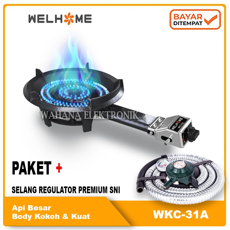 Kompor Komersial Welhome WKC 31A + Selang Regulator Gas SNI Kompor Mawar Kompor Cor