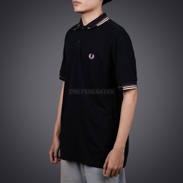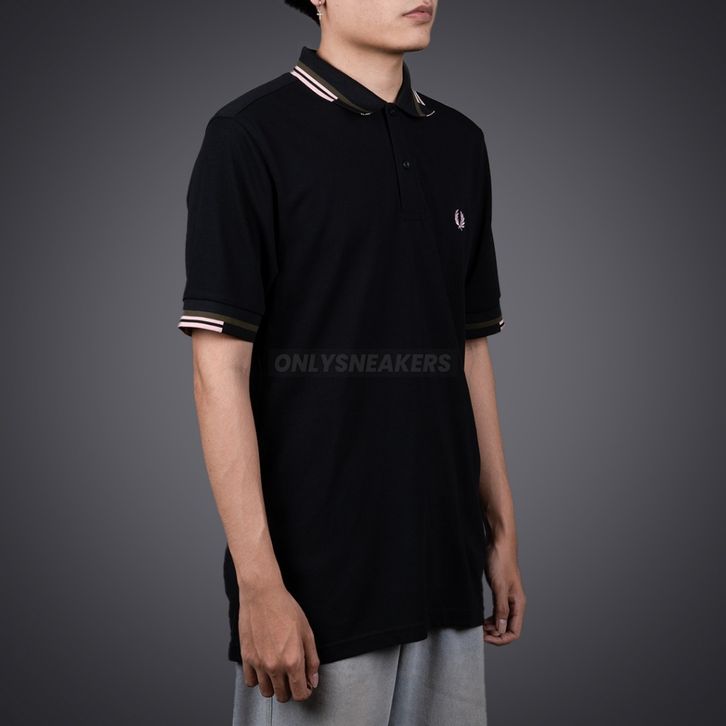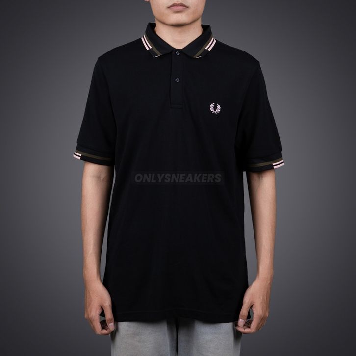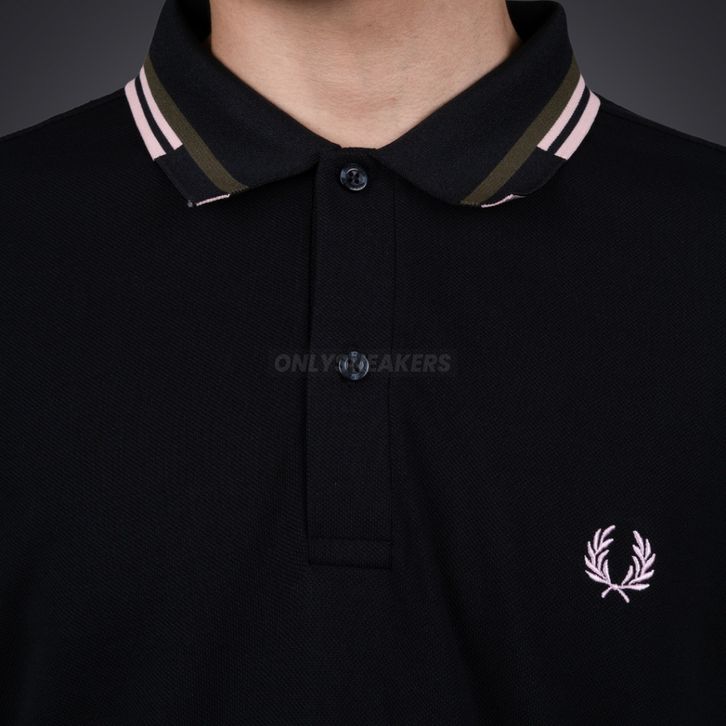 Fred Perry Abstract Tipped Pink Khaki Polo Black