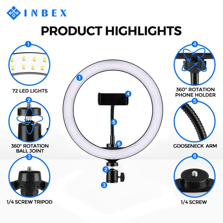 INBEX 26cm Ring Light Lighting Konten 1.35M/2.1M/2.8/Tri Untuk Shooting Video/Vlog/Live