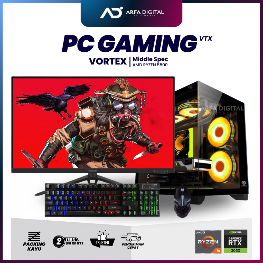 PC Rakitan Gaming LiveStreaming Fullset AMD Ryzen 5 5500 - VGA RTX 3050 8GB - RAM 32GB - SSD 512GB NVME - SSD SATA 1TB Monitor 24inch 180Hz