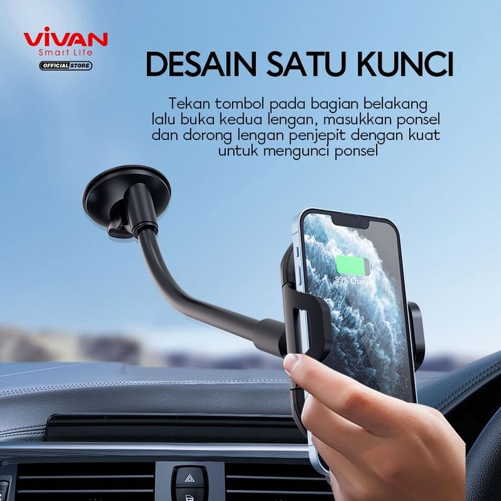 PROMO VIVAN Car Holder Universal CHS11 Automatic Lock 360Aluminium Tube Size 4.0- 6.5 inch Garansi 1