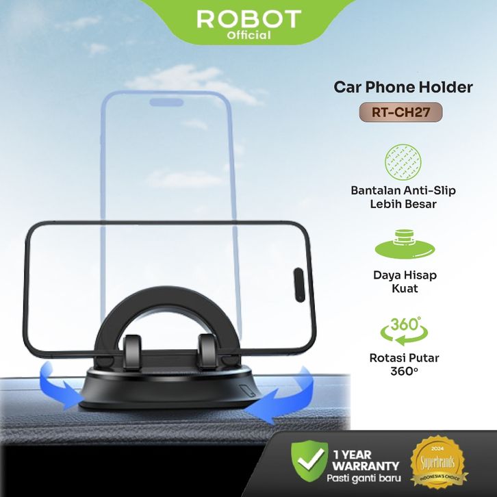 PROMO ROBOT Car Holder RT-CH27 Black Suitable & Sillicone Material Stand Holder Original - Garansi 1