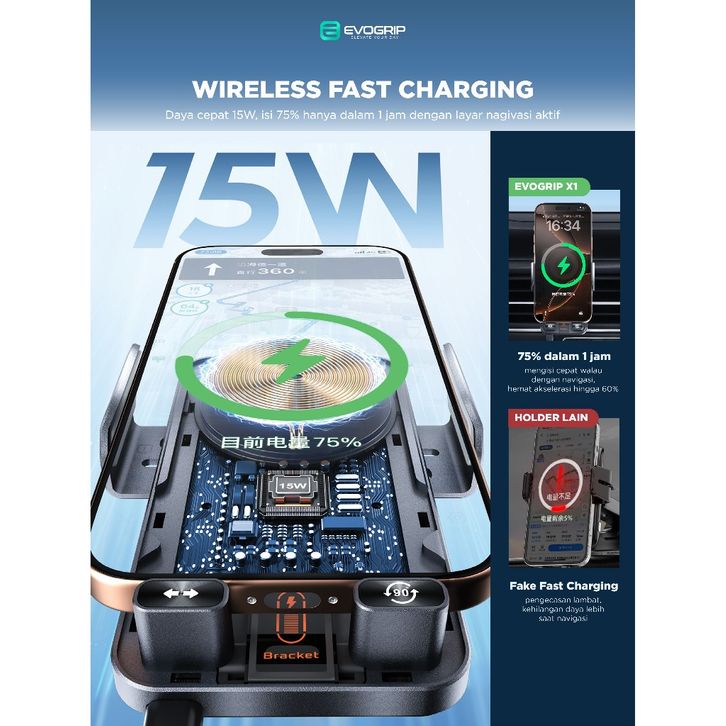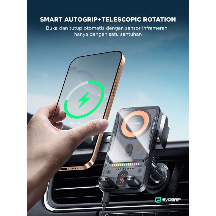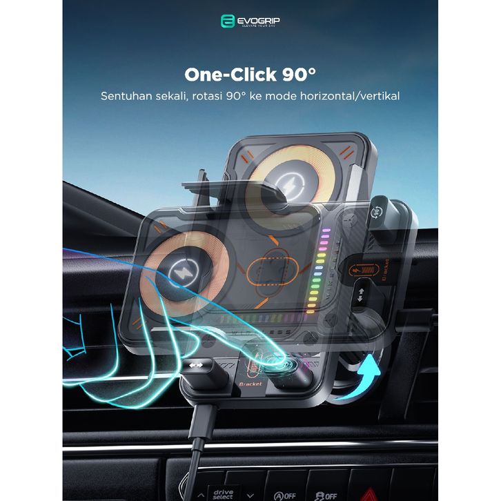 PROMO EVOGRIP X2 Car Phone Holder Automatic Rotation Airvent AC Mobil Wireless Charging 15W dengan
