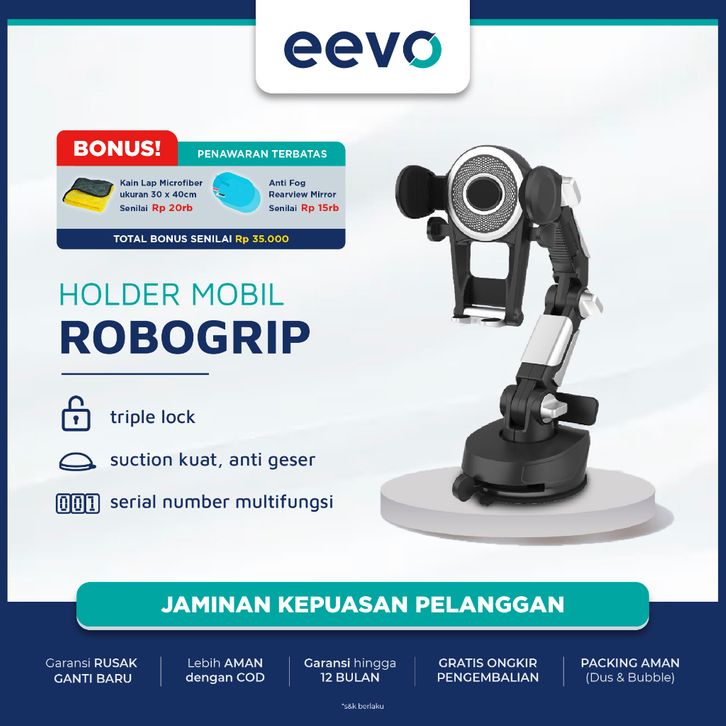PROMO eevo Holder Handphone Mobil Dashboard Kaca RoboGrip 360 Derajat Waterproof Tempat HP Tempel