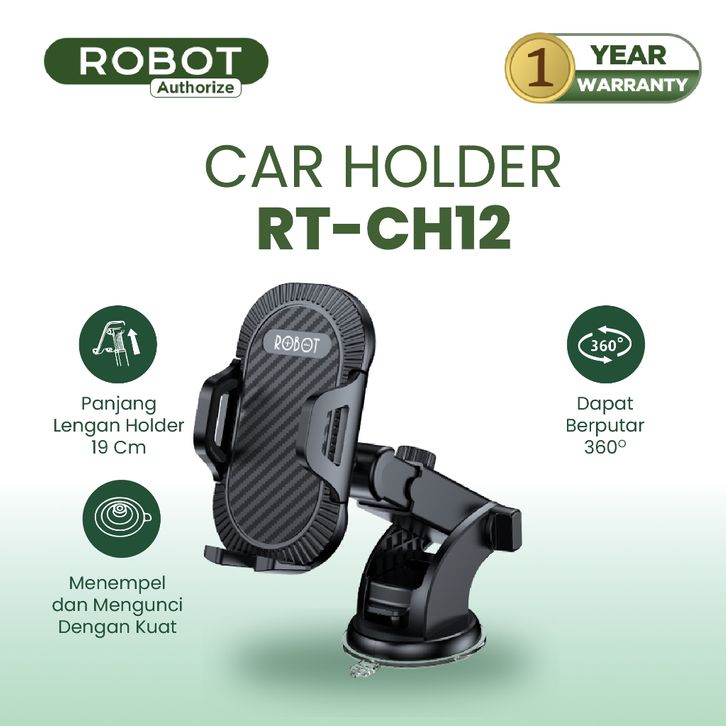 PROMO ROBOT RT-CH12 Universal Car Holder Black Suction Cup Automatic Lock 360 Original - Garansi 1