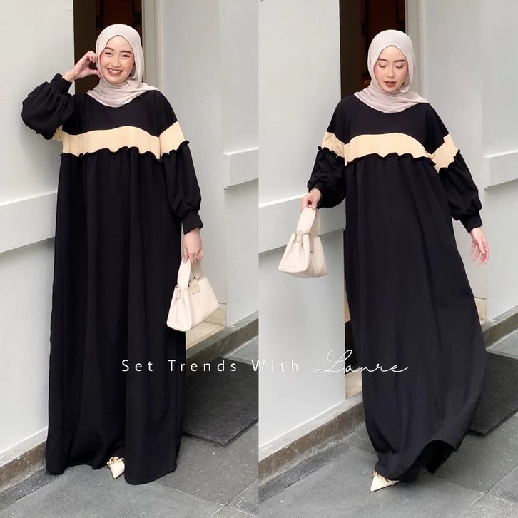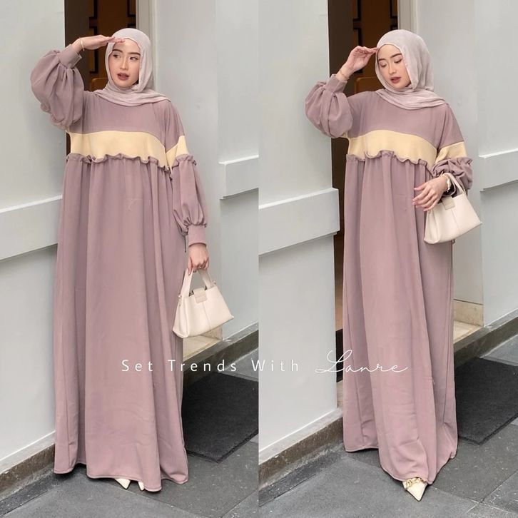 Kara Dress Rempel Bahan Knit By Lanre Gamis Jumbo Lengan Balon