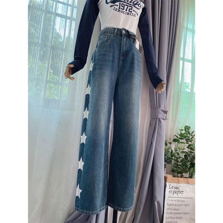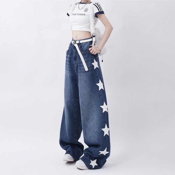 Jeans Bermotif Bintang Dipinggir Celana Jeans Panjang Wanita Highwaist Wanita Celana Baggy Jeans Gaya Korea