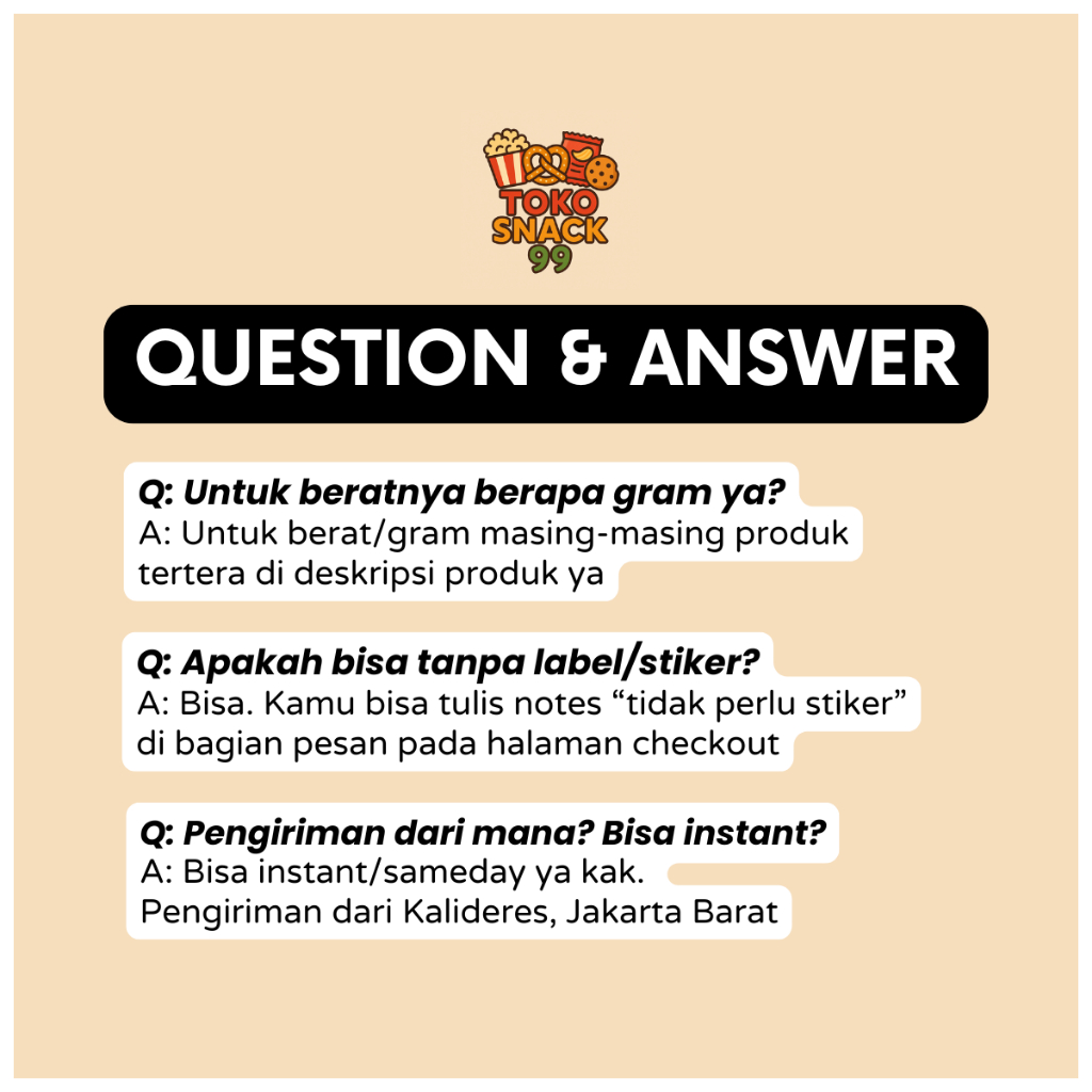 Wafer Roll Susu, Wafer Roll Vanilla, Pang-Pang Pedas, Telur Gabus Wijen, Biskuit Gemrose, Emping Jagung, Stik Balado, Sumpia Udang, Twist Corn Ori, Singkong Balado