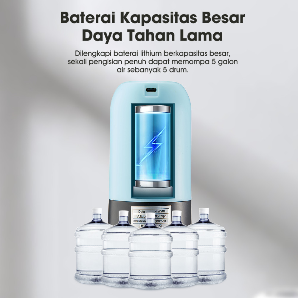 SAMONO Pompa Galon Elektrik Pipa Stailess Food Grade Bisa di Lepas Bisa di Charge Kapasitas Baterai Besar Dispenser Air