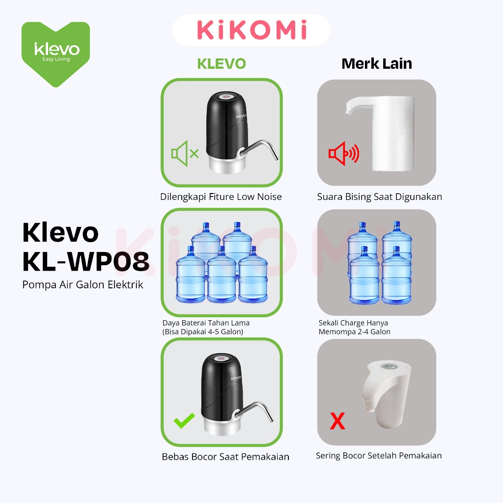 KLEVO KL-WP08 Pompa Galon Elektrik NON LED Anti Bising Automatic Water Pump Rechargeable - KK