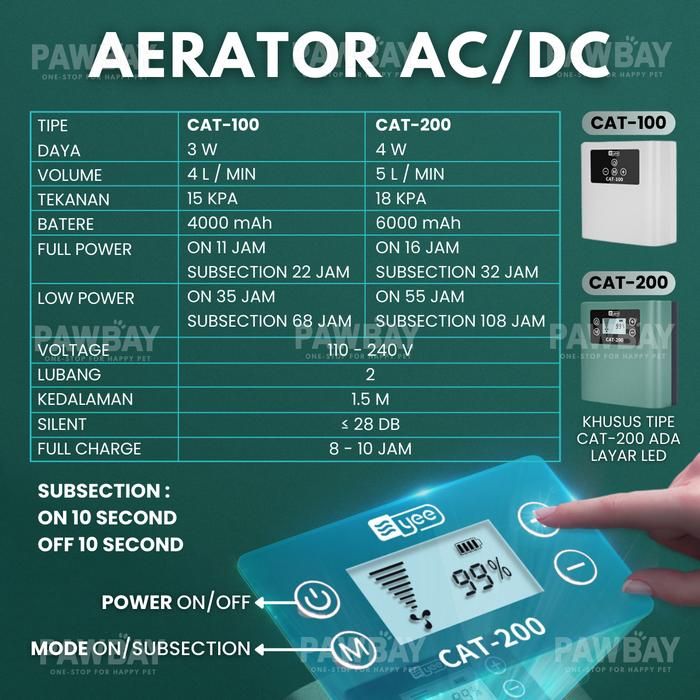 Super Silent Aerator ACDC Cas Pompa Gelembung Udara USB Portable AC DC Baterai Charge Airator