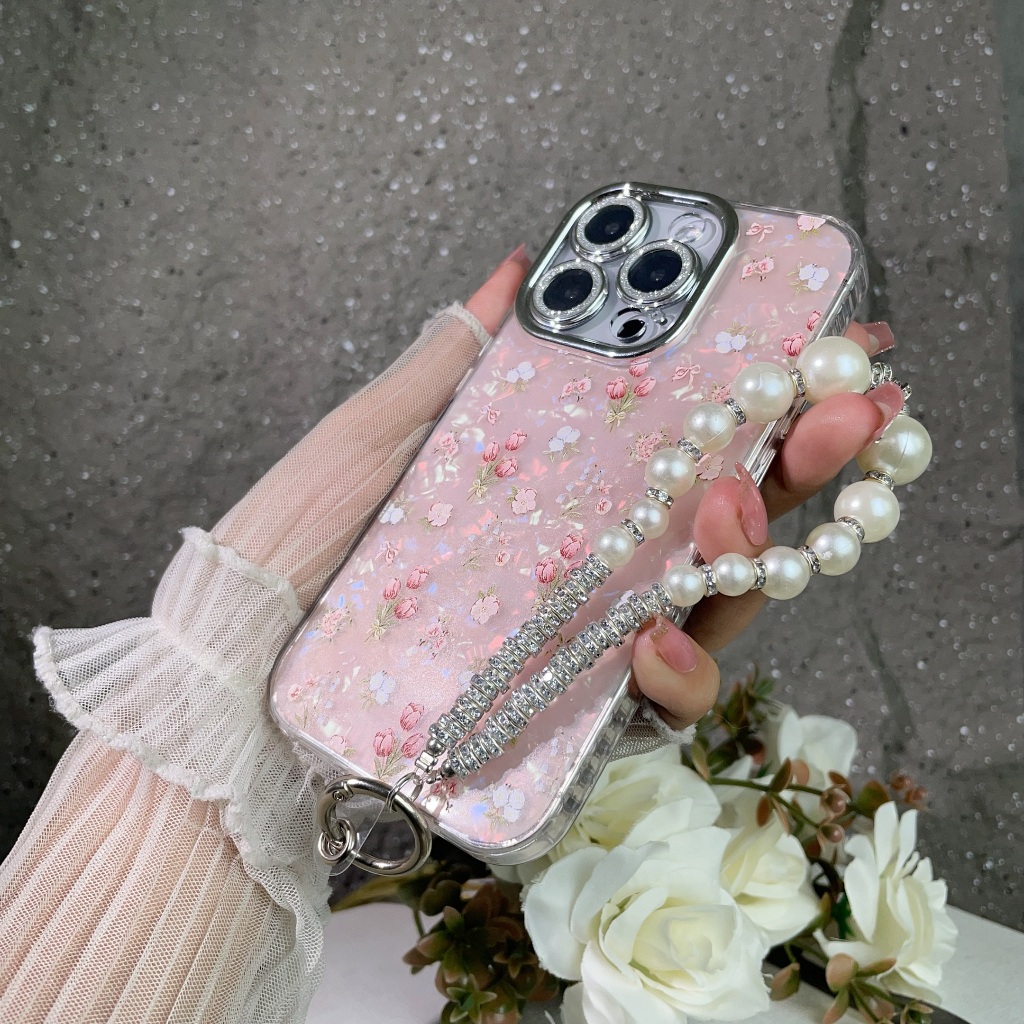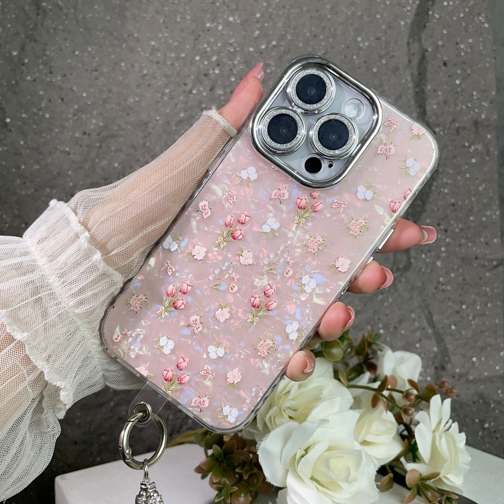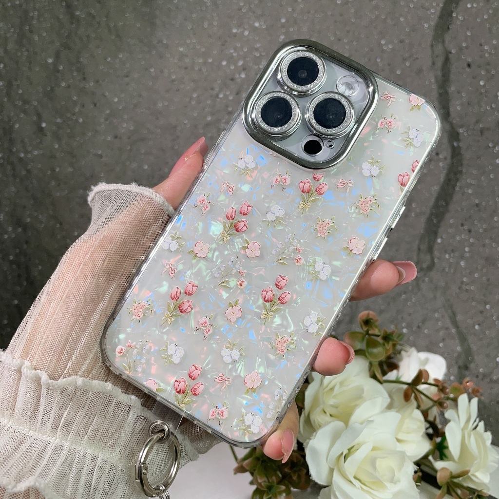 【Case+Chain】 Flower Glossy Case Compatibel For iPhone11xr iPhone7/8/se2/se3 7plus/8plus Xs 12mini 15plus 14/14promax