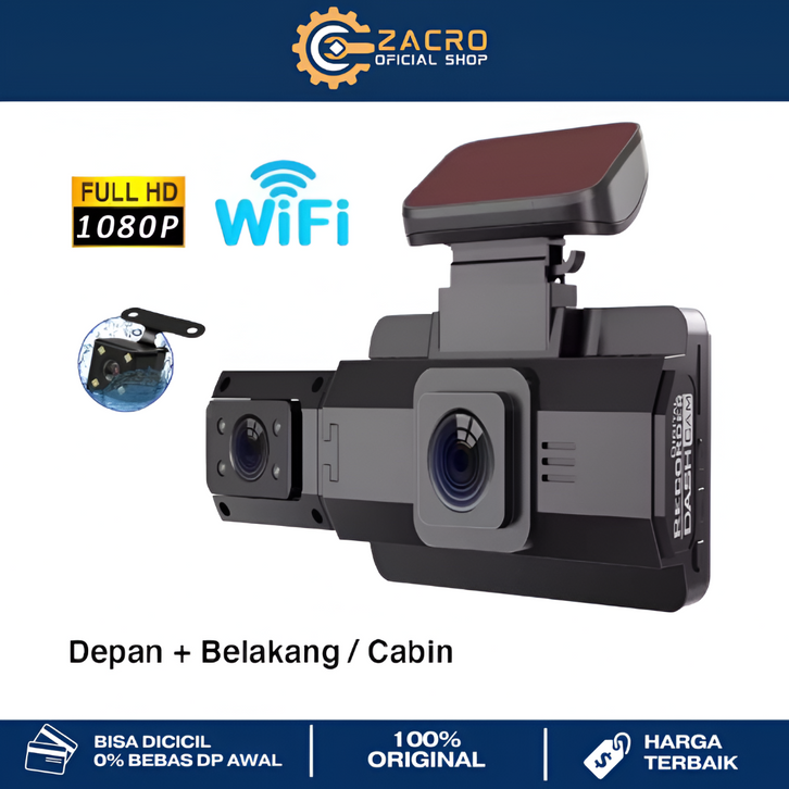 Dashcam Mobil 1080P WiFi 2 Cameras IPS Screen Parking Monitoring Loop Recording