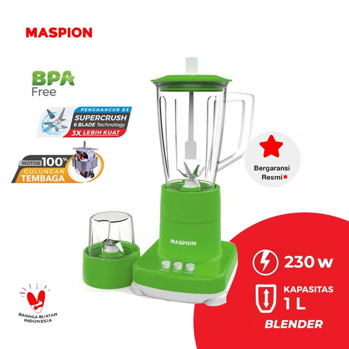BLENDER MASPION MT-1272 GL KACA KAPASITAS 2IN1 1 LITER + DRY MILL - BERGARANSI RESMI