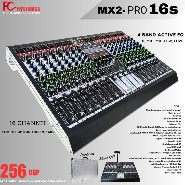 Mixer Audio 16 Channel Mono Mixing Console Firstclass MX2 PRO 16S | Mixer Audio MX 2 PRO 16 S With Stand HP Hard Case