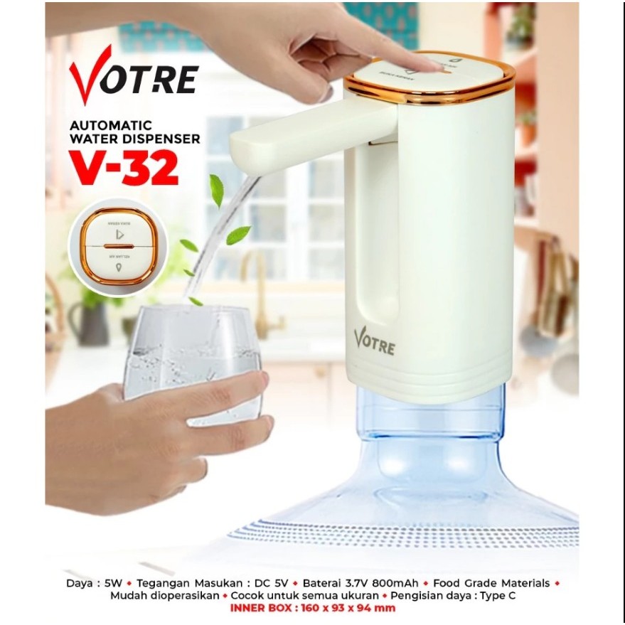 VOTRE Water Dispenser Automatic V-32 Pompa Galon Elektrik Dispenser Air Water Pump Portable Kabel Mesin Stainless