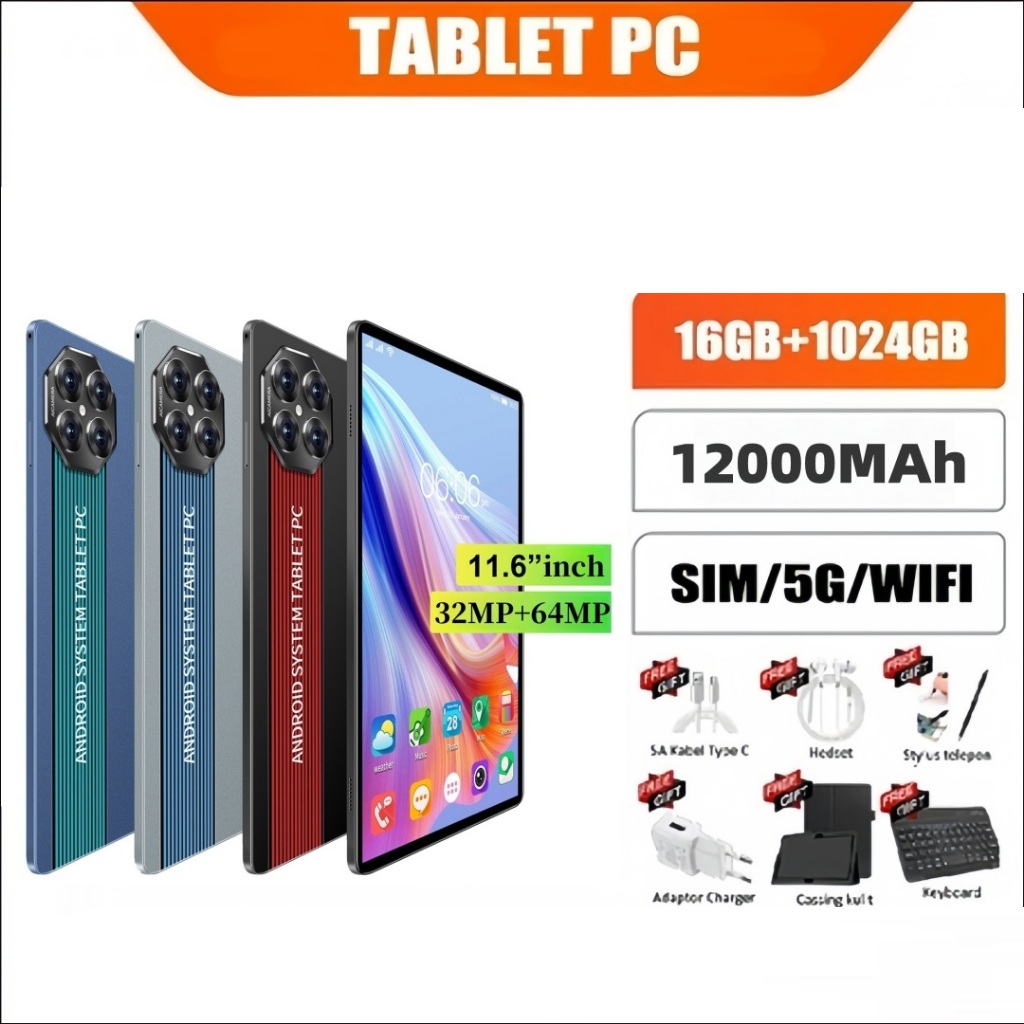 Tablet Max80 PC Asli Baru Tab 11.6inch 16GB+1024GB Tablet Android 11.6inch Layar Full Screen Layar Besar Wifi