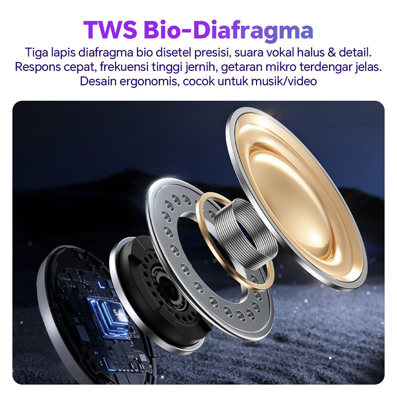 [Star]Earphone Bluetooth5.4J16PRO--NoiseCancelling,Bass Mantap,Baterai Tahan Lama 30 Jam,Led Tampilan Sport Gaming Musik