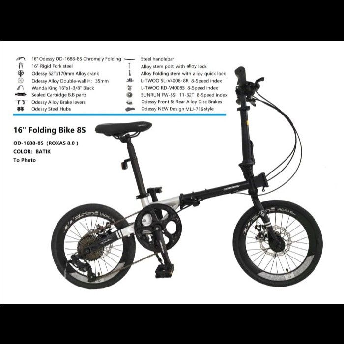 TERMURAH Sepeda Lipat Odessy 16 88 Roxas Frame Alloy - 8 Speed Garansi Original adodg