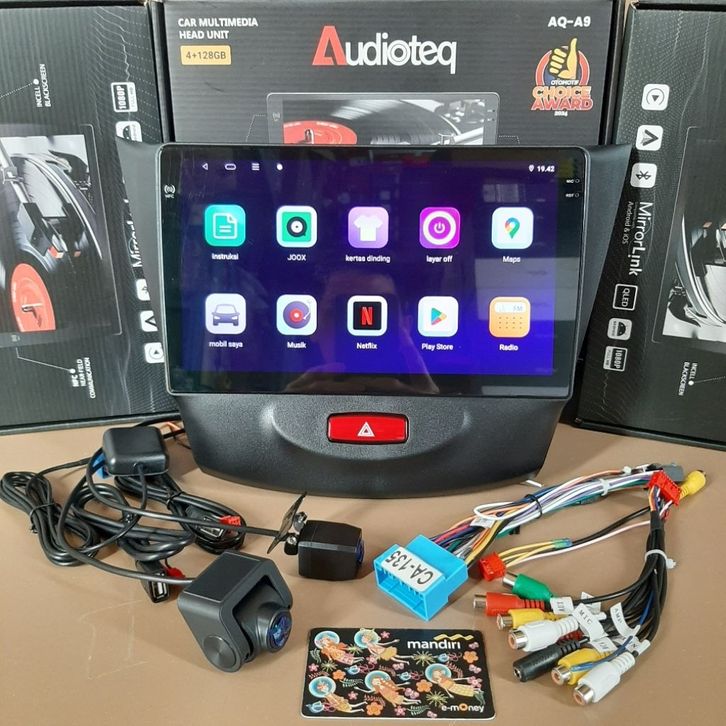 HEAD UNIT ANDROID WULING CONFERO + KAMERA DVR ANDROID AUDIOTEQ 10 INCH RAM 4/128 NFC WITH COOLING FAN INCELL BLACK
