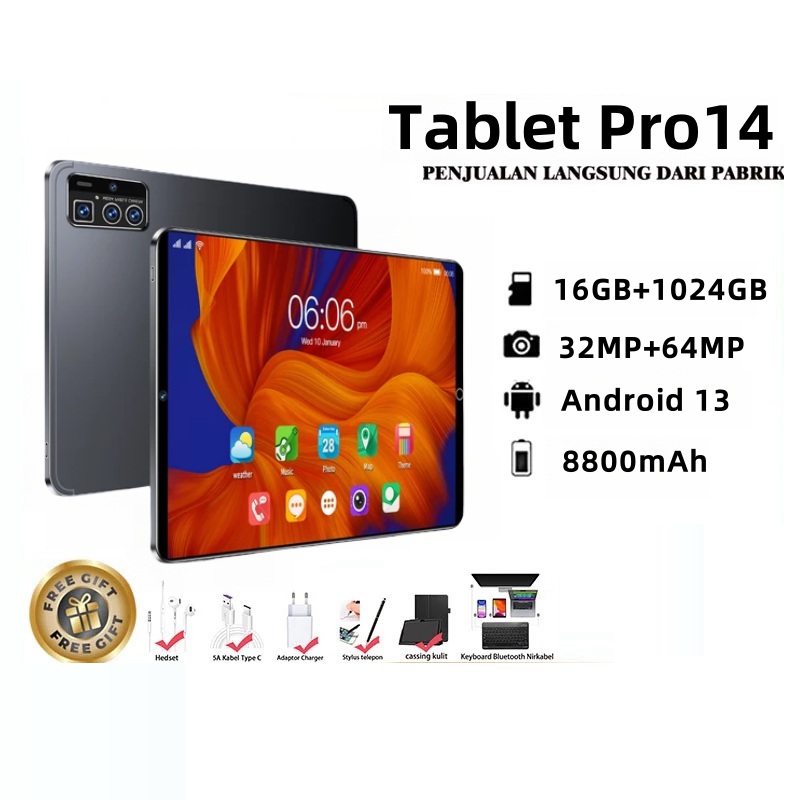 Tablet Android Pro 14 11.6 Inch, RAM 16GB + 1024GB ROM, 5G Dual SIM, Wifi, Tablet PC untuk Belajar & Hiburan C