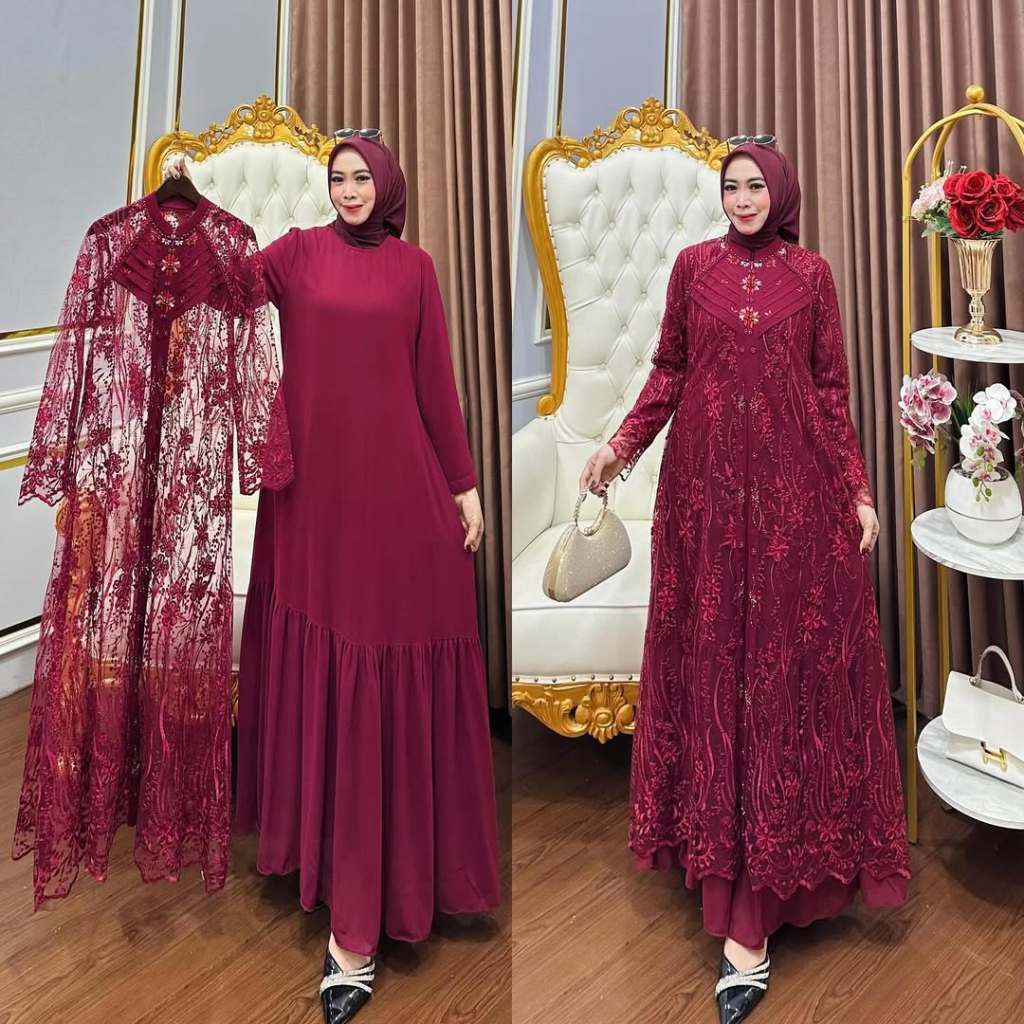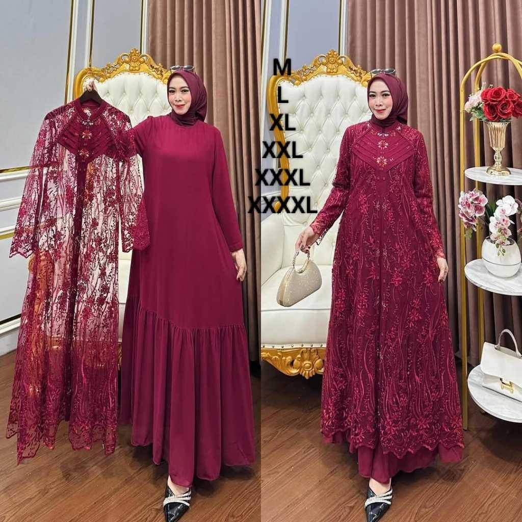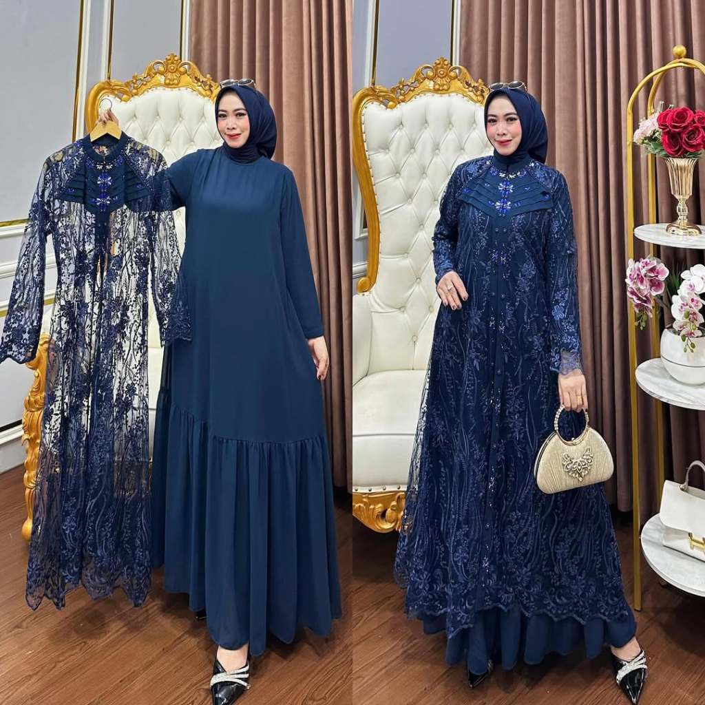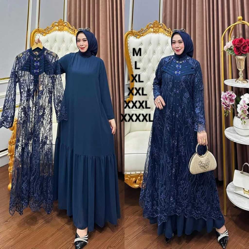 GAMIS INARA SET OUTER JUMBO M L XL XXL XXXL XXXXL SERIAN TERBARU NAVY MAROON // GAMIS KONDANGAN WANTA TERBARU 2025 /