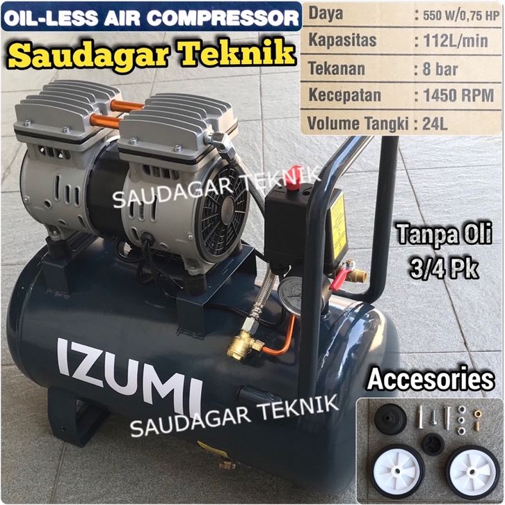 Kompresor Izumi OL 0724 OL 1024 Mesin Kompresor Angin Silent Oiless Tanpa Oli 3/4 Hp 1 Hp 24 Liter Izumi By NLG