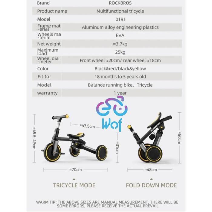 ROCKBROS Kids 0191 Sepeda Anak Roda 3 Tricycle Push Bike Balance 3in1 - Black Red