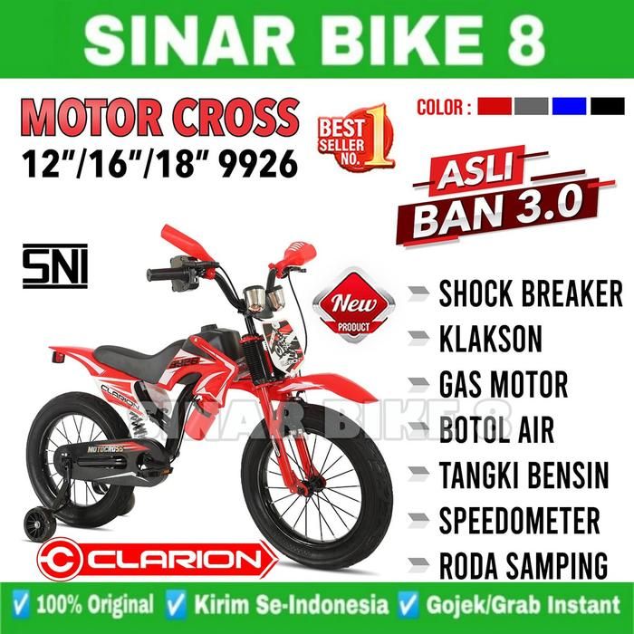 Sepeda Anak Laki BMX CLARION CL 9926 TRAIL Ukuran 12 16 18 Inch Model Motor Cross Ban 3.0 - Merah 12 Inch