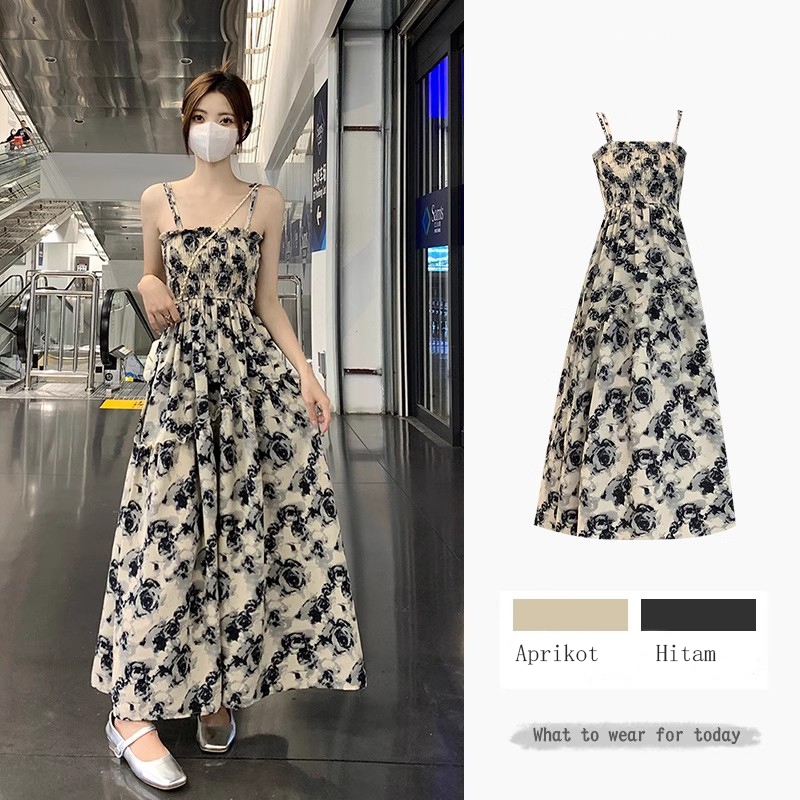 KEYGIRL DRESS LONG DRESS CAMISOLES TALI KECIL WANITA KOREA/DRESS MINI TALI PUNDAK GAUN WANITA SANTAI/GAYA LIBURAN BALI