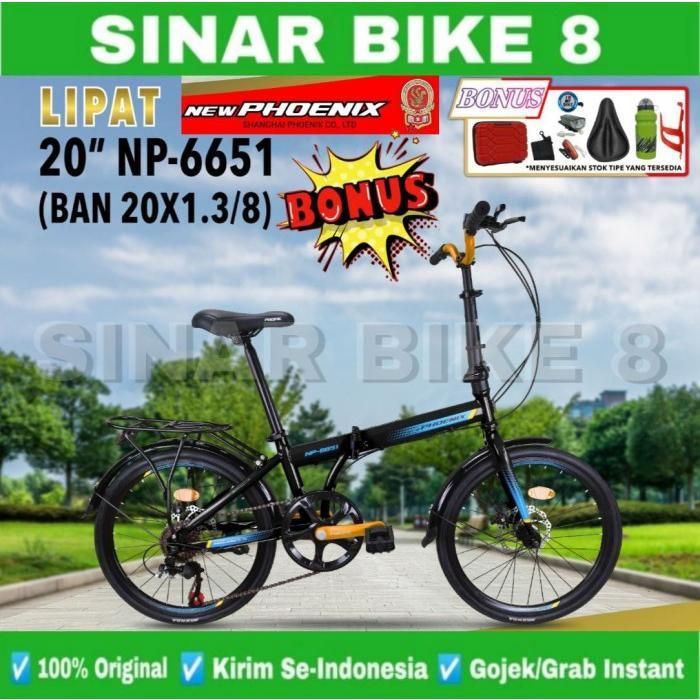 Sepeda Lipat NEW PHOENIX NP-6651 Ukuran 16 & 20 Inch Folding Bike - Black Yellow 16 inch