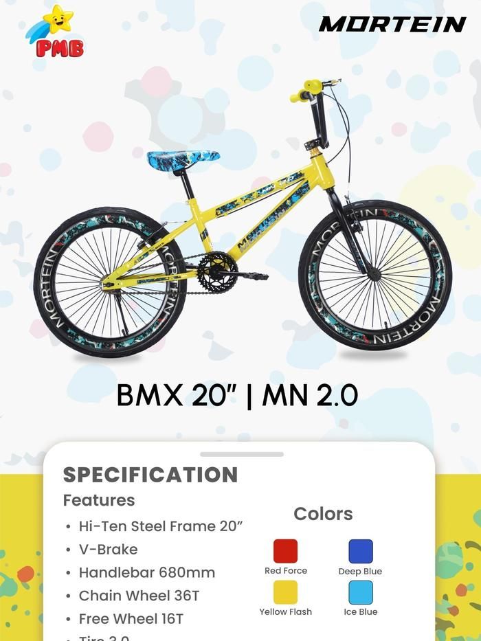 SEPEDA MORTEIN BMX 20 MN 2.0 sepeda roda dua sepeda keren HI-Ten steel frame 20 Free wheel sprocket PMB TOYS - Red Force