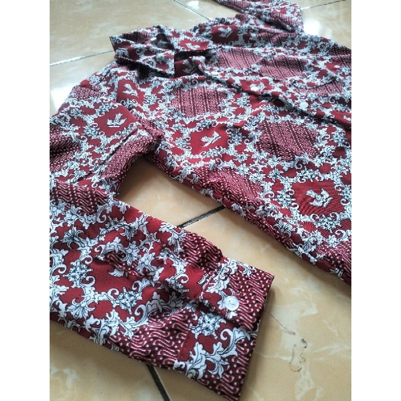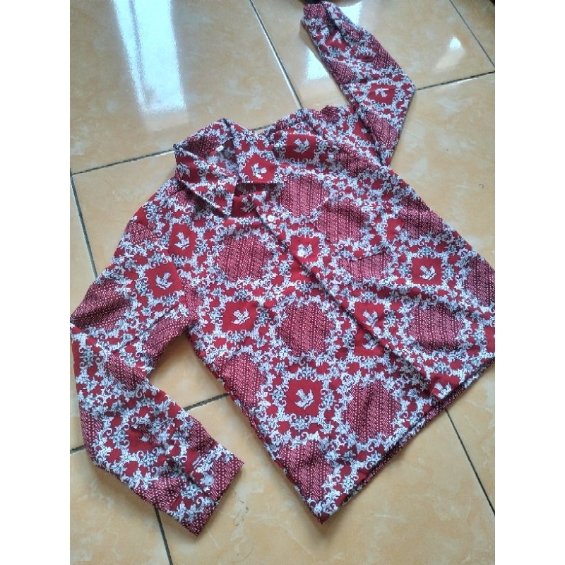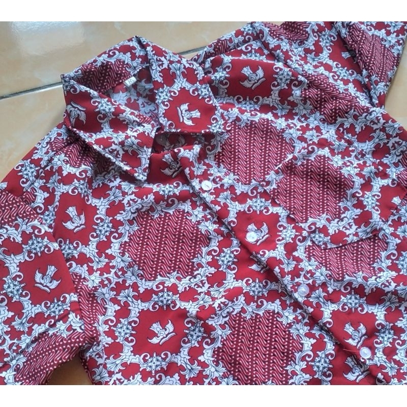 BATIK SD NEGERI/BATIK SD NASIONAL/SERAGAM BATIK KEMEJA SEKOLAH SD MOTIF LERENG MERAH KERAH KEMEJ LENGAN KANCING