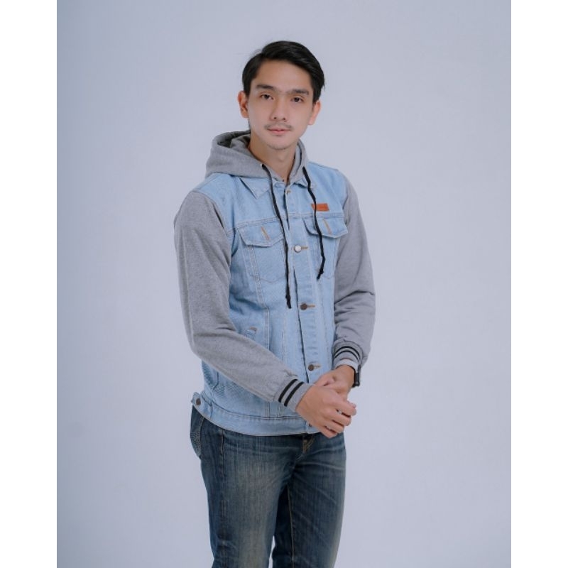 Jaket Jeans Reglan Kombinasi Fleece Sweater Pria - Jeans Combi Cotton Jaket Motor