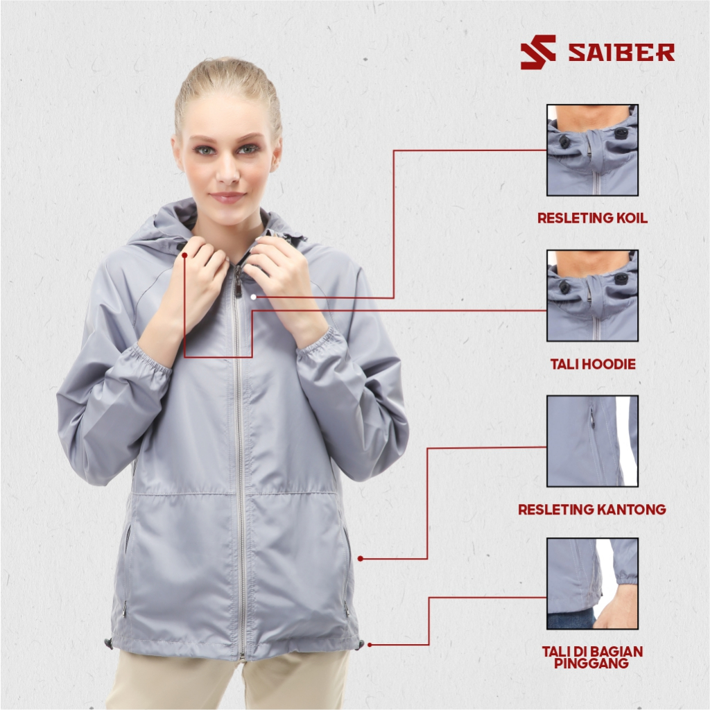 Saiber - Jaket Parasut Running Pria Wanita UV Protection Packable Warna Abu-abu Polos